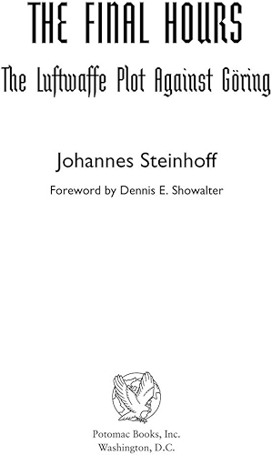 Fighter ace Col. Johannes Steinhoff commanded an elite group of pilots trained to fly the first jet aircraft employed in combat, the famous Messerschmitt Me-262, at a time when Reich Marshal Hermann Goring, by then out of favor with Hitler for his failure to stop the Allied bombing raids, denounced his own pilots as cowards. After Goring refused to deploy the Me-262 as a fighter, the role for which it was designed, and instead ordered its use as a bomber, Steinhoff and other senior air leaders devised a plot to depose Goring from his command of the Luftwaffe in the futile hope of staving off final defeat in the air. The pilots’ long-standing disgust with their Reich Marshal’s military incompetence and technical dilettantism led to their dangerous intrigue in the fall of 1944. There was an added element of risk as their desperate gamble came in the wake of the July 20 plot against Hitler, the onrushing Allied onslaught, and the general disintegration of the German military and its war effort.Steinhoff crashed while trying to take off in a heavily laden Me-262. The explosion left him badly burned and still in the hospital when the war ended. From his hospital bed in the summer of 1945, he dictated to a fellow wounded German soldier the account that became The Final Hours. His memories are vivid, painful, and gripping. Free from the years of recrimination and reflection so common in similar works, his tale recounts the pressure of fighting for a lost cause and the intrigue fostered by an unstable command. His account reveals every facet of a remarkable fighter pilot’s struggle for survival and provides an excellent case study of the plodding bureaucracy and scheming obscurantism so characteristic of the Third Reich.